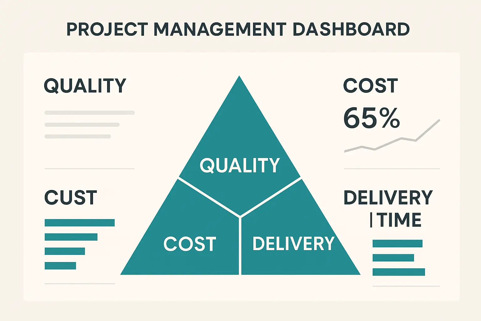 Changing one parameter affects the other two. Reducing delivery time can harm quality or increase costs. Improving quality requires additional investment or more time.